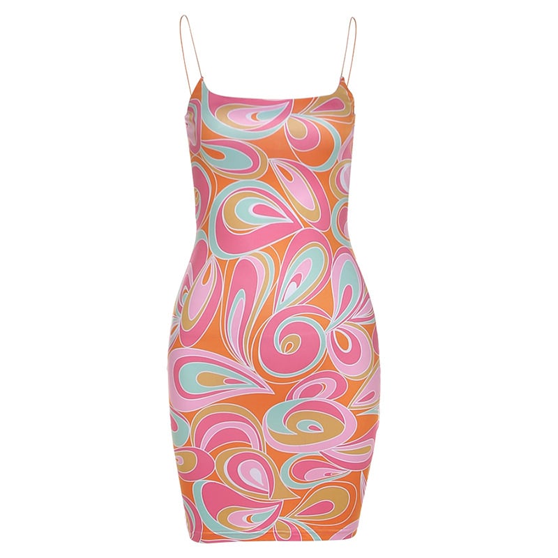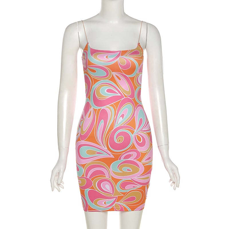 The unique one-shoulder design and backless feature add a touch of allure, making this dress a must-have for your wardrobe. The eye-catching printed pattern complements the sleek silhouette, bringing a vibrant flair to your look. Ideal for street style or casual outings, this dress is sure to turn heads.